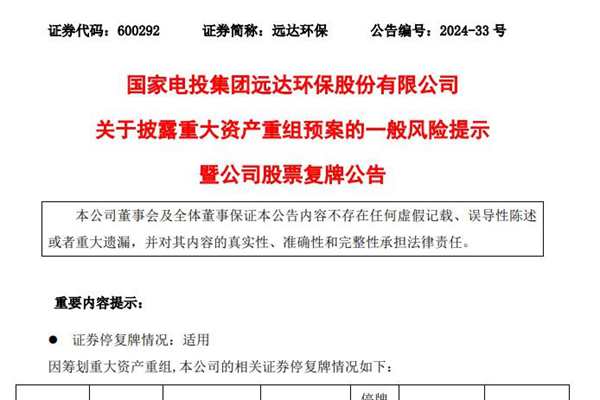 轉載請注明來(lái)自馬鞍山市深藍光電有限責任公司,本文標題:《遠達環(huán)保重組最新動(dòng)態(tài),重組計劃揭曉!》