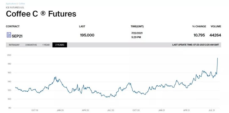 受全球氣候變化、產(chǎn)量變化、貨幣政策等多種因素影響,近年來(lái)咖啡期貨價(jià)格波動(dòng)較大,特別是在疫情期間,由于供應鏈中斷和需求增長(cháng),咖啡期貨價(jià)格一度飆升。