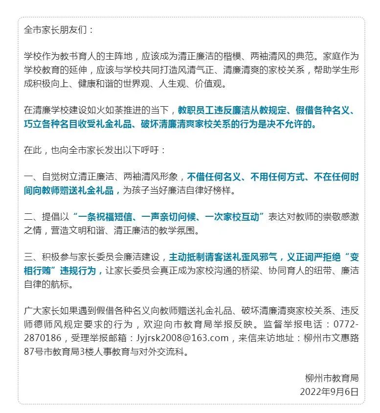 3、增加教師激勵機制:通過(guò)表彰、獎勵等方式,提高教師的職業(yè)榮譽(yù)感和幸福感,這樣不僅可以減少家長(cháng)送禮的動(dòng)機,也能讓教師更加珍惜自己的職業(yè)尊嚴。