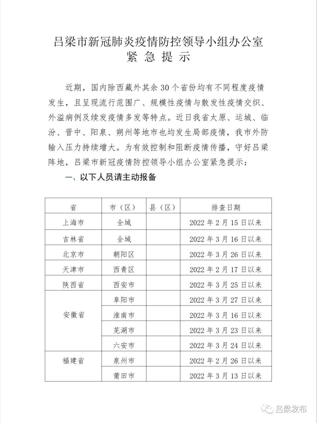 * 查詢(xún)呂梁市各區域的疫情風(fēng)險等級。